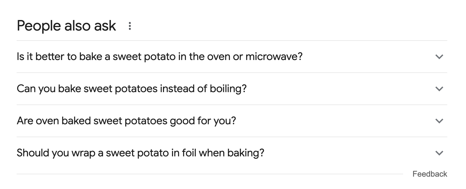 Google likes to provide users with the best answers to their questions. My last Google search was "Can I cook sweet potatoes in the oven?" 🙈 (I know, I should’ve known the answer to that!) The search before that was "Where can I find a reusable gold shopper-style bag?" Both of these were questions and that's the first thing you should consider for your blogs....what questions do your customers ask when they email you, come into your shop or book a discovery call? Turn these questions into blog posts. That's the easiest way to start.